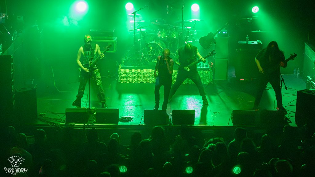 Roughly two-thirds through the set, frontman John Kevill emerged mid-song wielding a sword, holding it high like a general rallying his troops. The crowd exploded. It wasn’t just a gimmick—it was a statement: Warbringer was here to lay waste. And that’s exactly what they did. Riffs flew like shrapnel, the double-kick thundered like cannon fire, and the crowd met them head-on with every ounce of energy left.