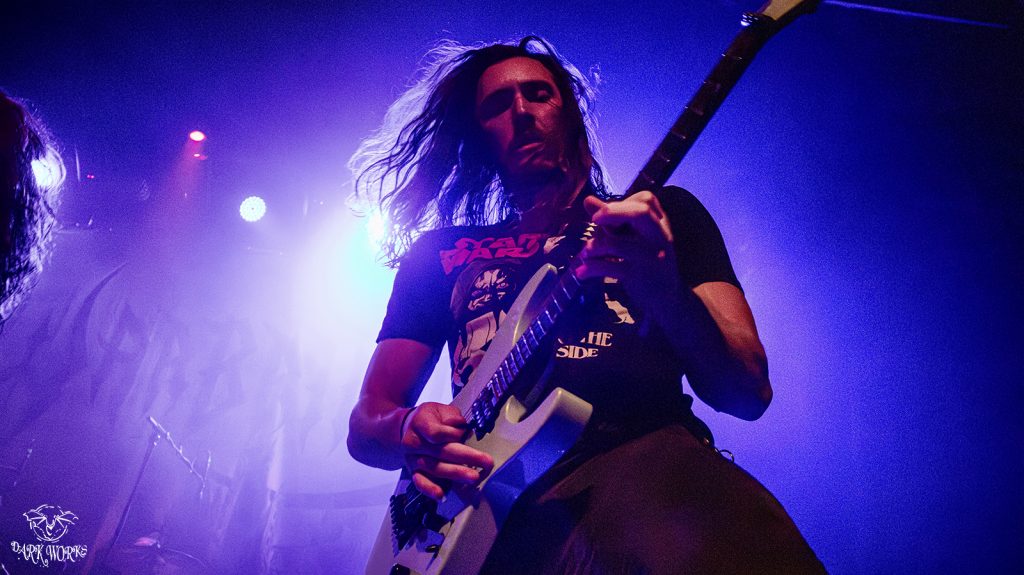 Vocalists Ezra Haynes and Michael Stancel blended their vocal styles beautifully—powerful and clean, raw and refined—while guitarist Greg Burgess unleashed a flurry of jaw-dropping solos that soared above the pit. The chemistry between all three was undeniable, making Allegaeon’s set feel as dynamic as it was crushing.