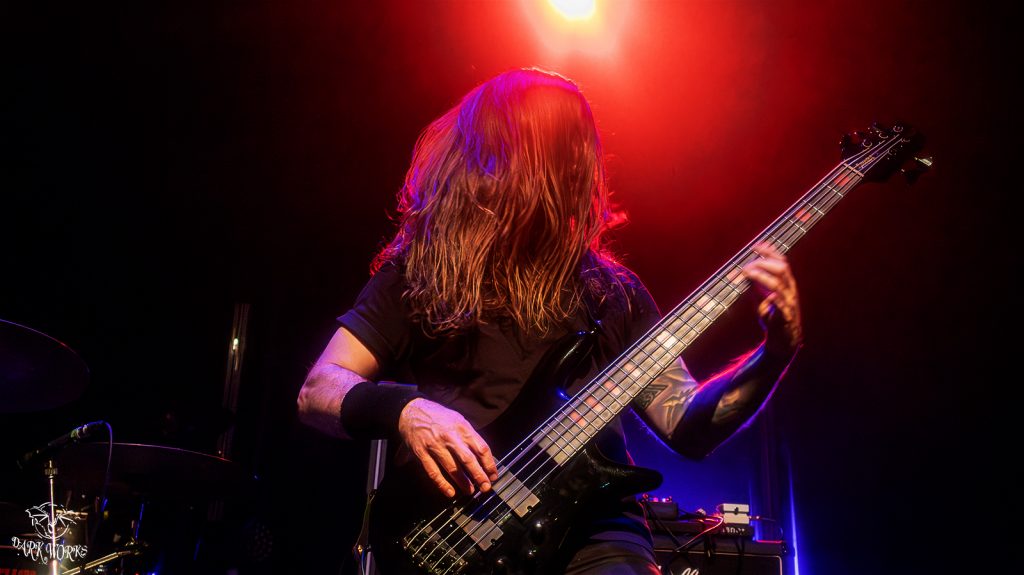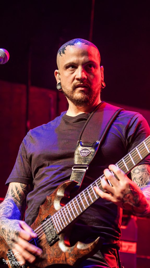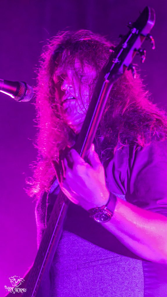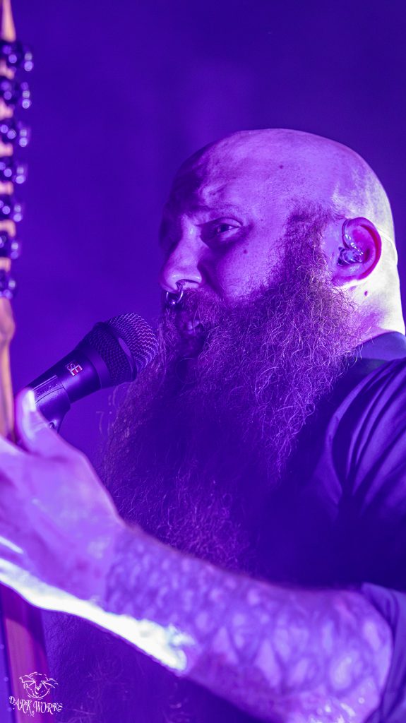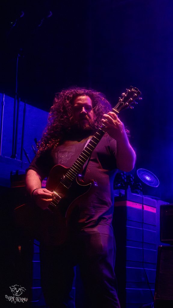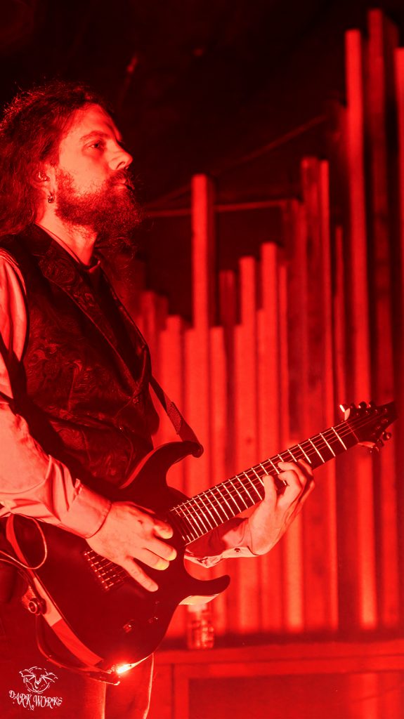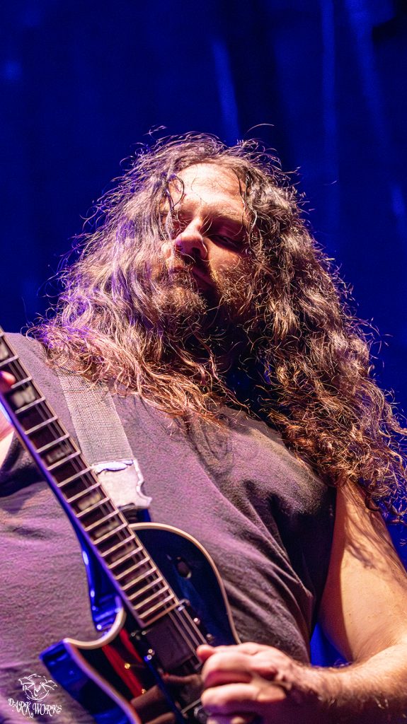 The lighting bathed the band in alternating hues of starlight and blood, enhancing the atmosphere of elegant decay. Bassist/vocalist Adam Biggs commanded the crowd with a steady mix of intensity and humility, while guitarist Brody Uttley’s layered tones built an immersive soundscape that felt almost too big for the venue to contain.