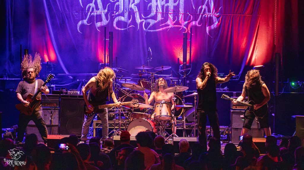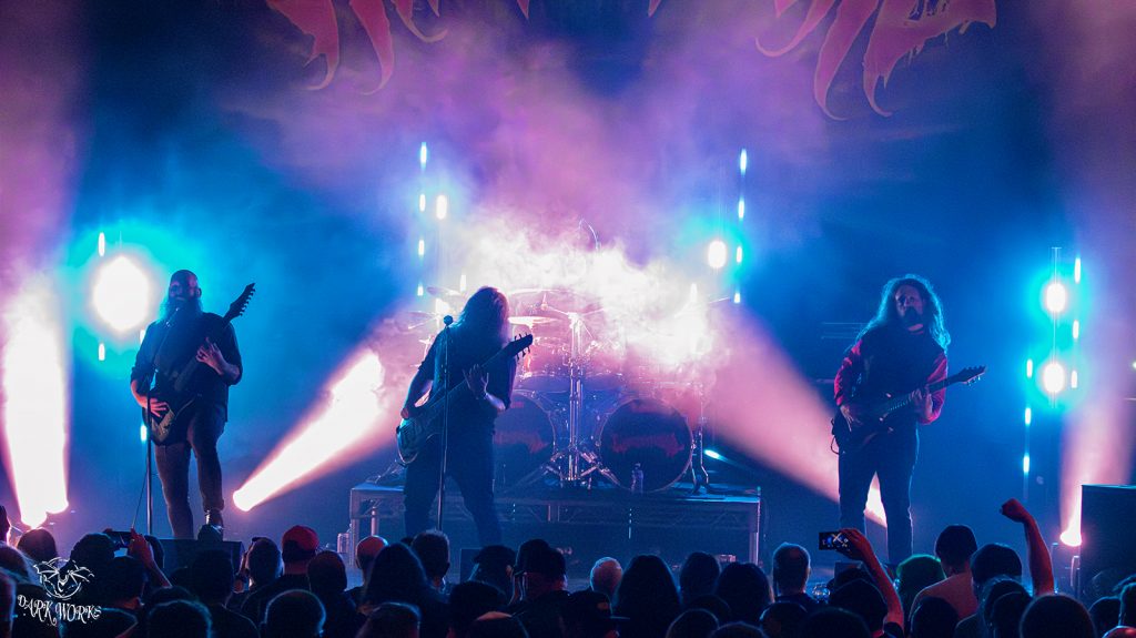 Next up, INTER ARMA shattered genre expectations and likely a few vertebrae. The Virginia-based titans of experimental sludge and blackened doom never play it safe—and tonight was no exception. Their set ebbed and flowed between suffocating heaviness and hypnotic beauty, often within the same song. Psychedelic leads swirled around apocalyptic drums, and just when you thought you had them figured out, they’d throw in a Southern-tinged riff or a mournful clean passage that haunted the bones. It wasn’t just a performance—it was a sonic séance.